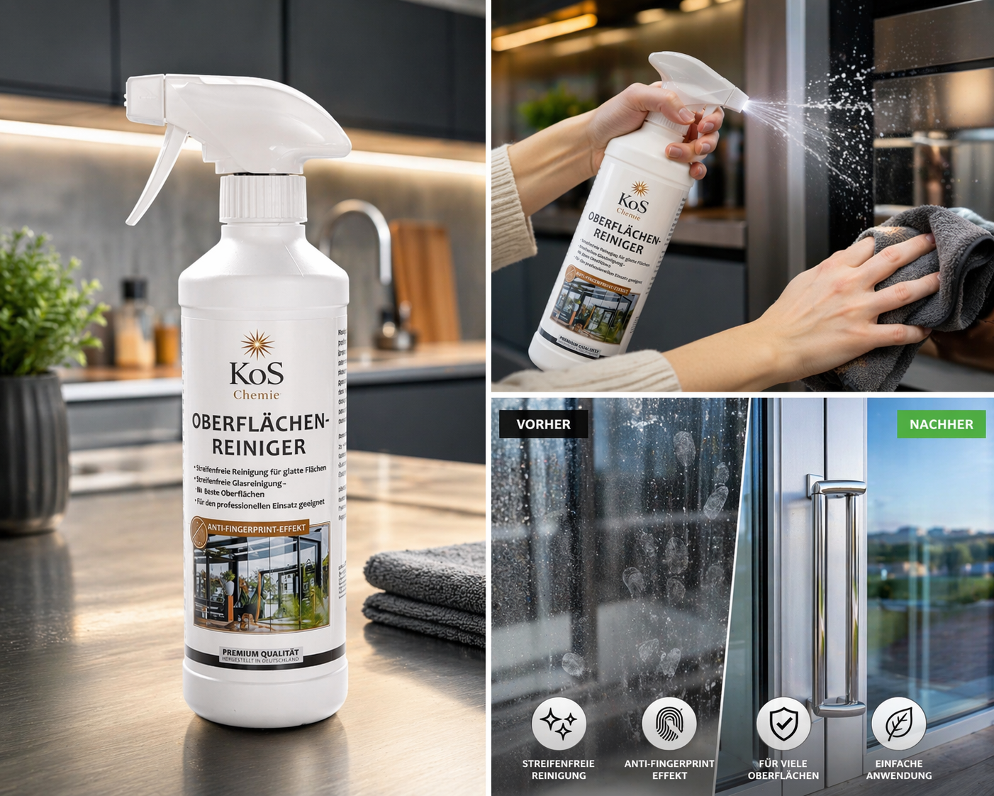 Oberflächenreiniger – streifenfreie Reinigung für Glas, Küche, Aluminium & mehr
