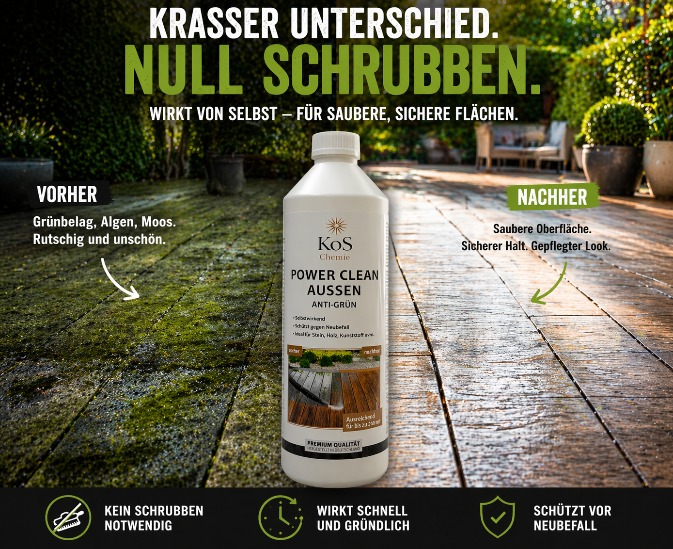 Power Clean Außen – Entfernt Grünbelag & schützt langfristig (Konzentrat)